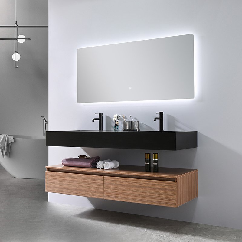 New Design Vanity Plywood Bathroom Cabinet with Slab Basin for Hotel Bathroom LED M