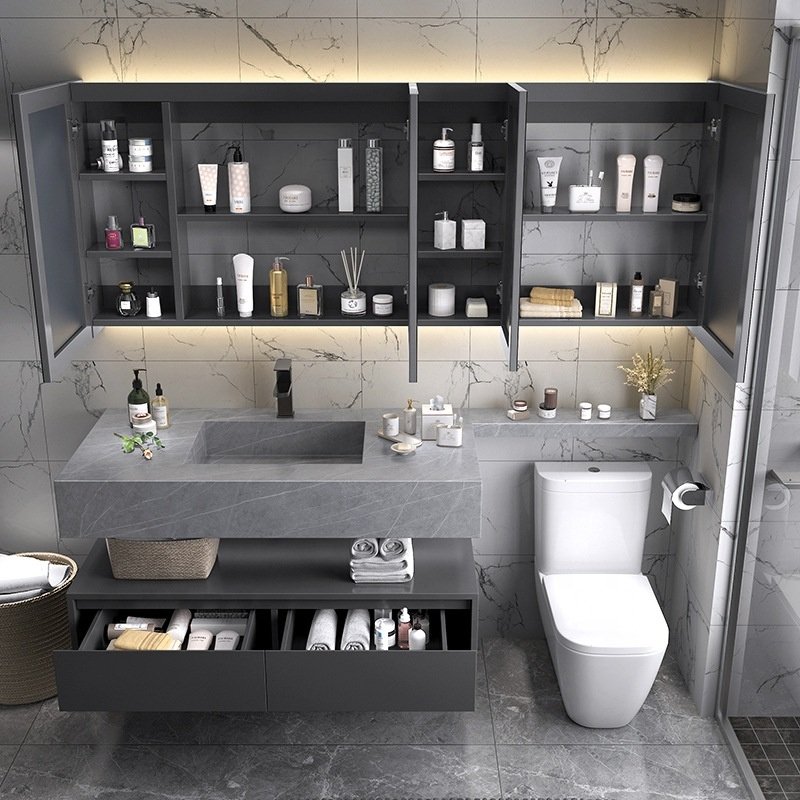 Slate Basin Rock Plate Bathroom Vanity Wash Basin Cabinet with LED Mirror