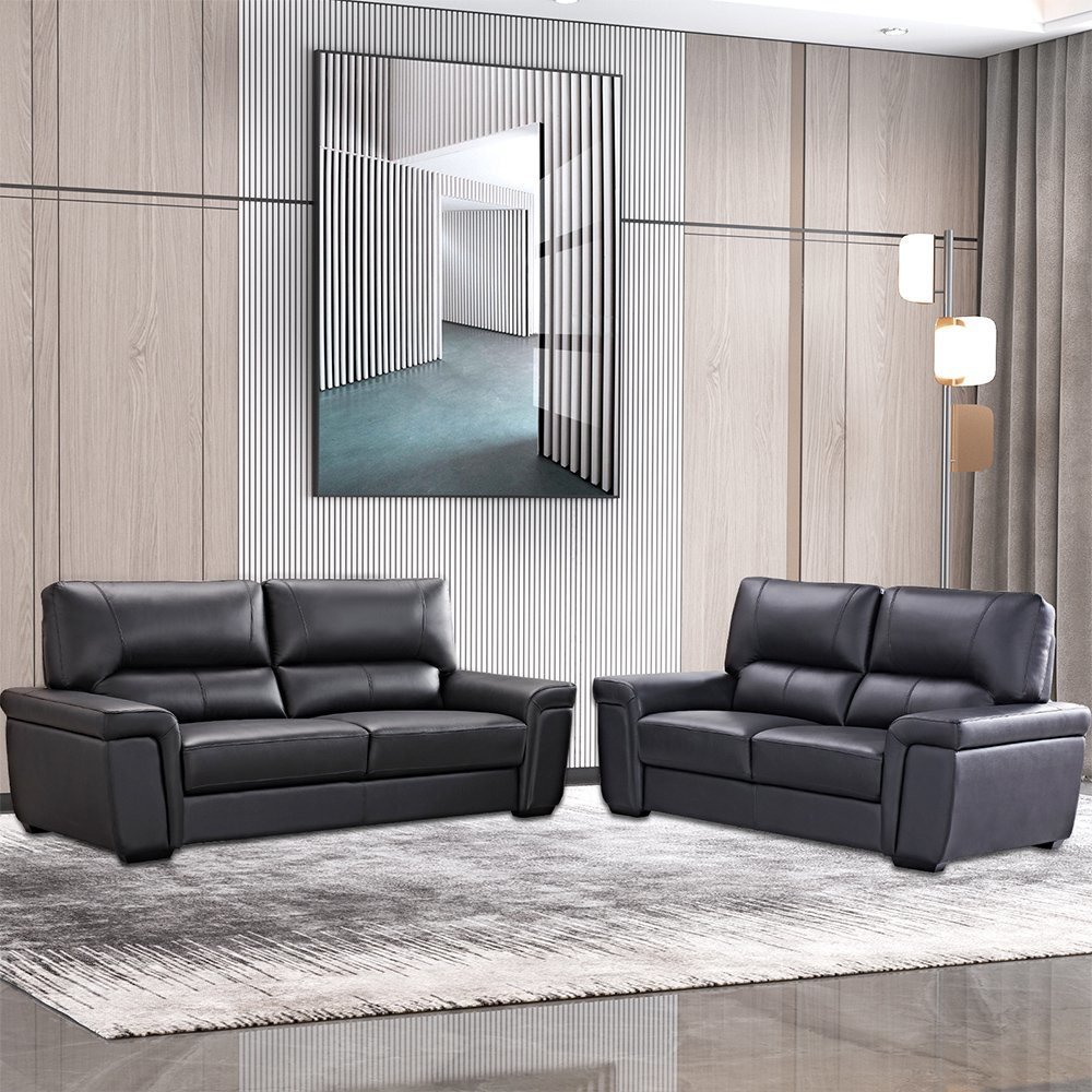 New Home Black Wooden Genuine Grain Leather Sofa for Living Room Furniture Set
