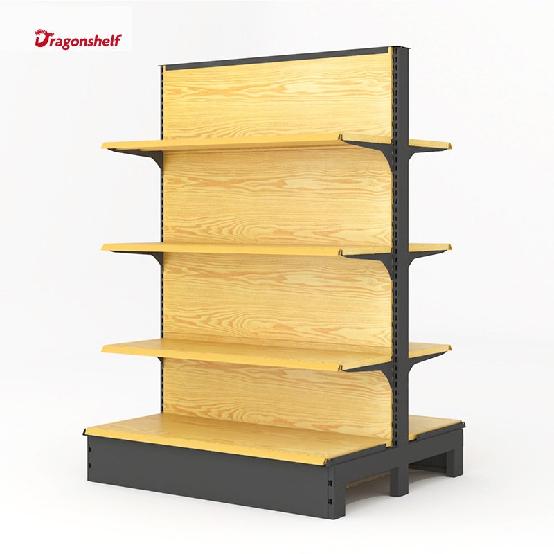 China Factory Wholesale Good Quality Wood Grain Shelves Grocery Store Display Racks
