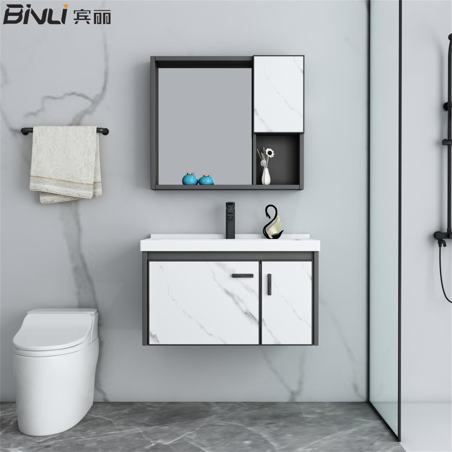 New Design Modern Style Home Furniture Water Resistant Aluminum Cabinet Set Bathroom Vanity - China ...