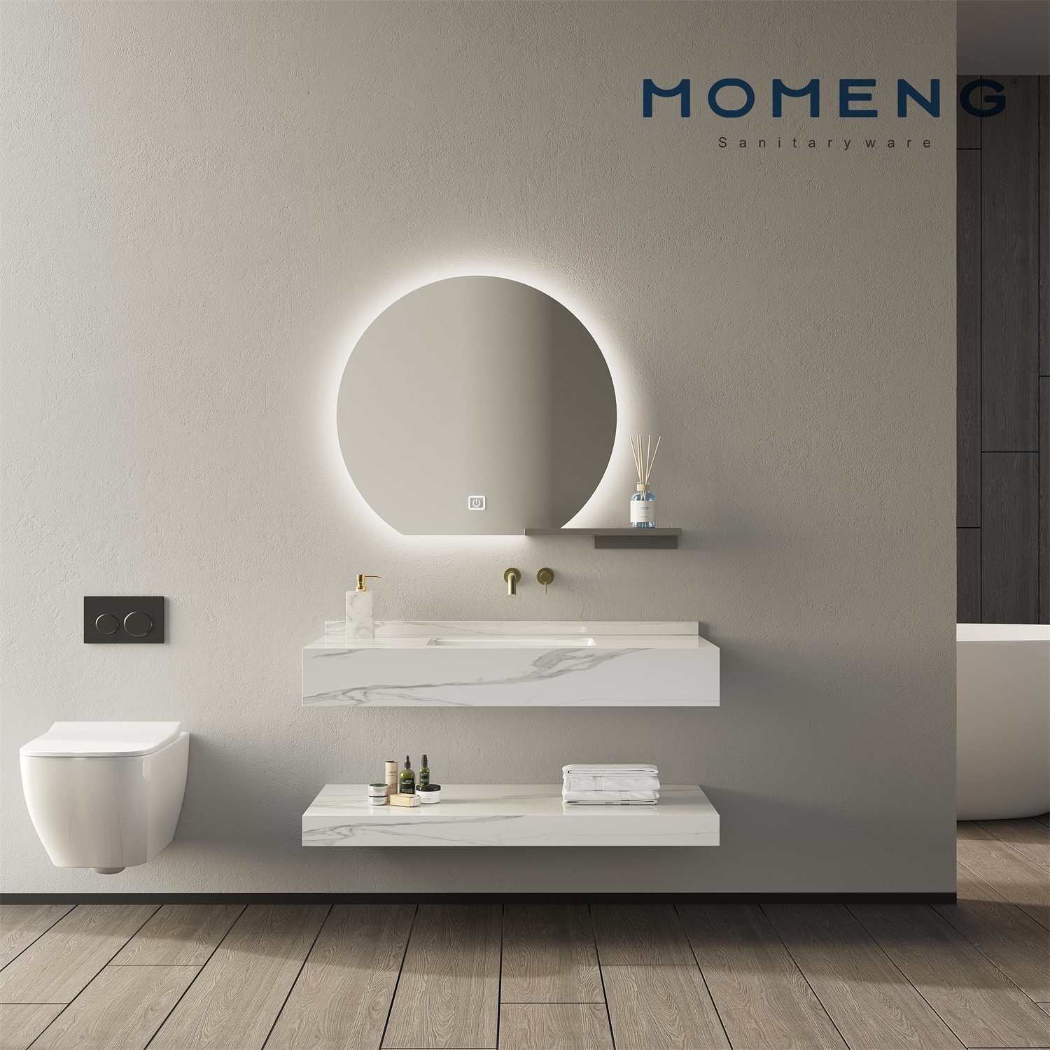 New Design Vanity Plywood Bathroom Cabinet with Slab Basin for Hotel Bathroom LED M