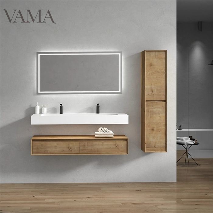 Vama 150cm One Piece Rock Stone Double Drawers Bathroom Cabinet Oak Wood Color Unit - China Melamine...