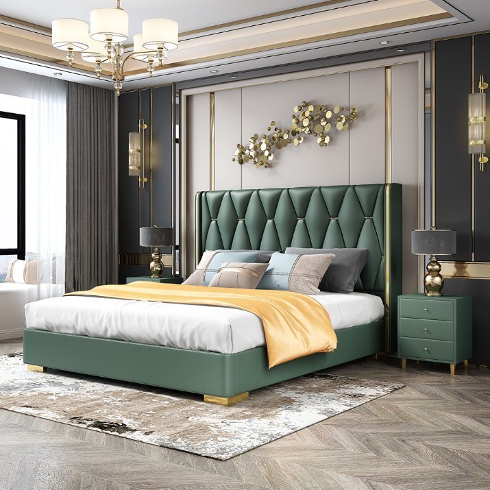 Luxury Home Leather Cama Bedding Furniture Set Mattress Tufted Wooden King Size Bed