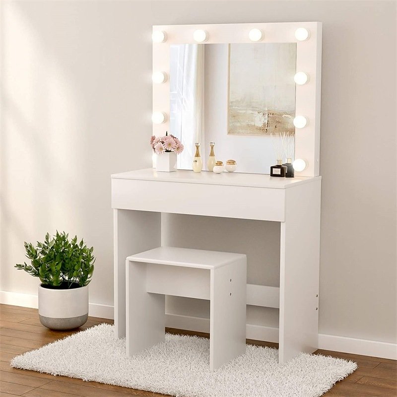White Dressing Table with 10 Light Bulbs and Chair - China Dressing Table and Mirrored Dressing Tabl...