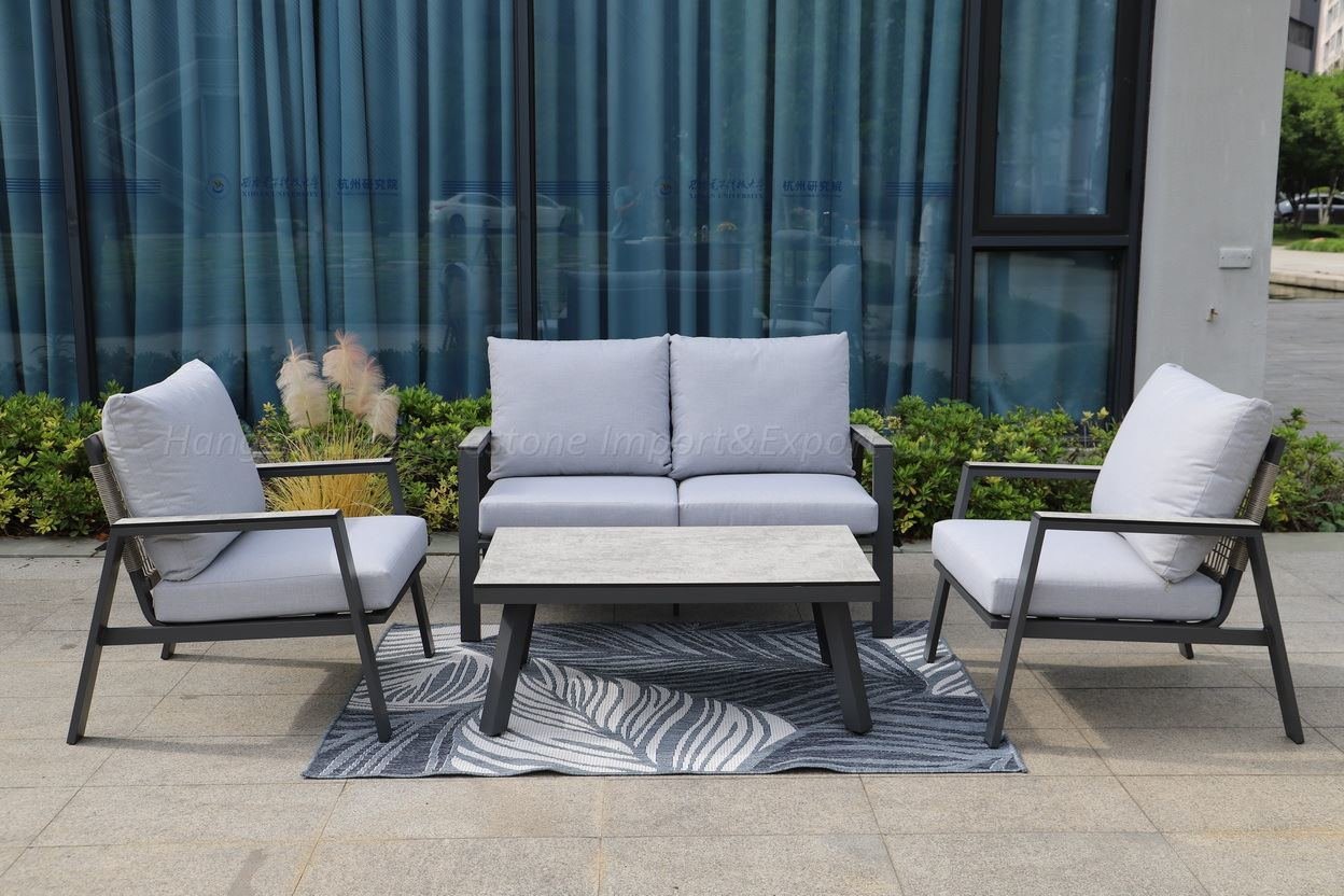 Garden Sofa Modern Outdoor Furniture Patio Leisure Sofa Set Rope Fabric Seat