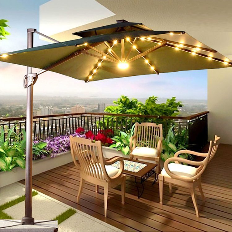 3 M Large UV Resistant Garden Balcony Parasol Outdoor Patio Roman Umbrellas with LE