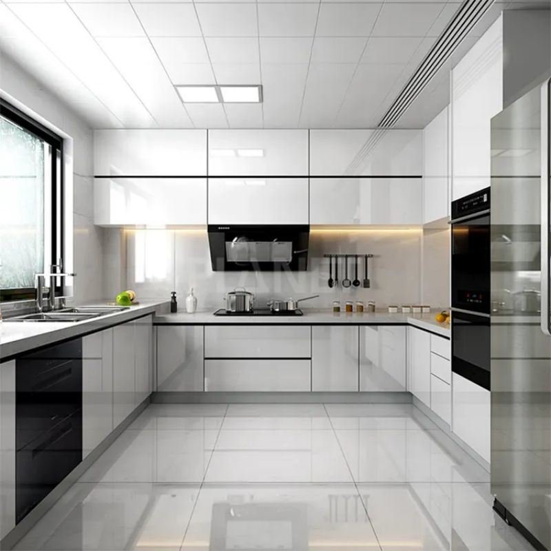 High Gloss Home Decoration Furniture L-Shaped MDF HPL Wall White Shaker Cupboard for Kitchen Island ...